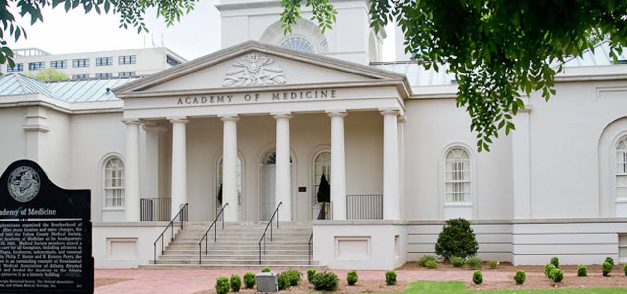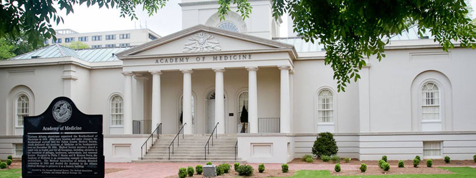At the corner of 7th Street and West Peachtree Street, in the heart of Midtown Atlanta, stands an elegant reminder of Atlanta’s past: The Historic Academy of Medicine at Georgia Tech. The Historic Academy of Medicine at Georgia Tech is one of the city’s premier venues for weddings, receptions, conferences, and other special events. The Academy offers an unparalleled opportunity to host functions in one of the most beautiful and historic settings in the South. The Academy is listed on the National Register of Historic Places and boasts beautiful composition and neoclassical architecture. A tribute to the southern reputation of charm and elegance, the facility displays Doric columns, an entry portico, black and white Italian marble floors, and a beautiful rotunda accented by the famous Czechoslovakian chandelier seen in the movie, "Gone with the Wind." The Academy offers old-world elegance and the style of days gone by.