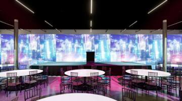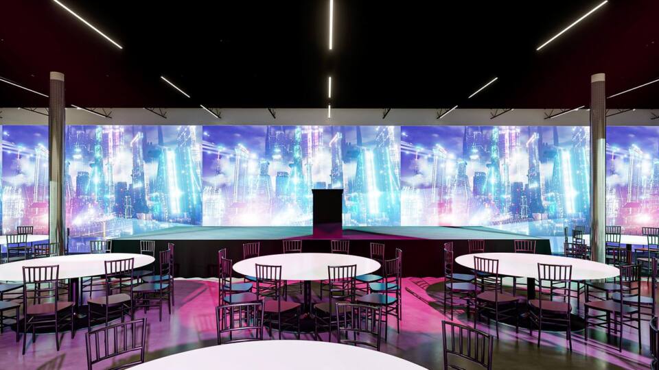 Welcome to the future of event spaces! With our cutting-edge digital platform, you can create immersive and interactive experiences that will leave your guests in awe. With a massive 90 ft LED wall, intelligent lighting, and a powerful line array audio system, your event will come to life like never before.